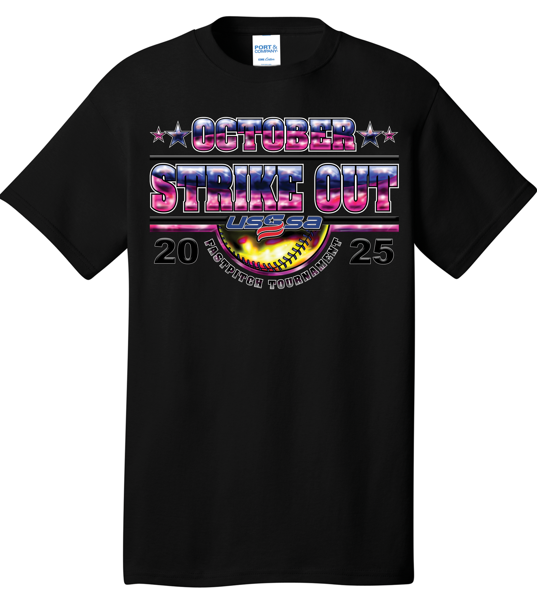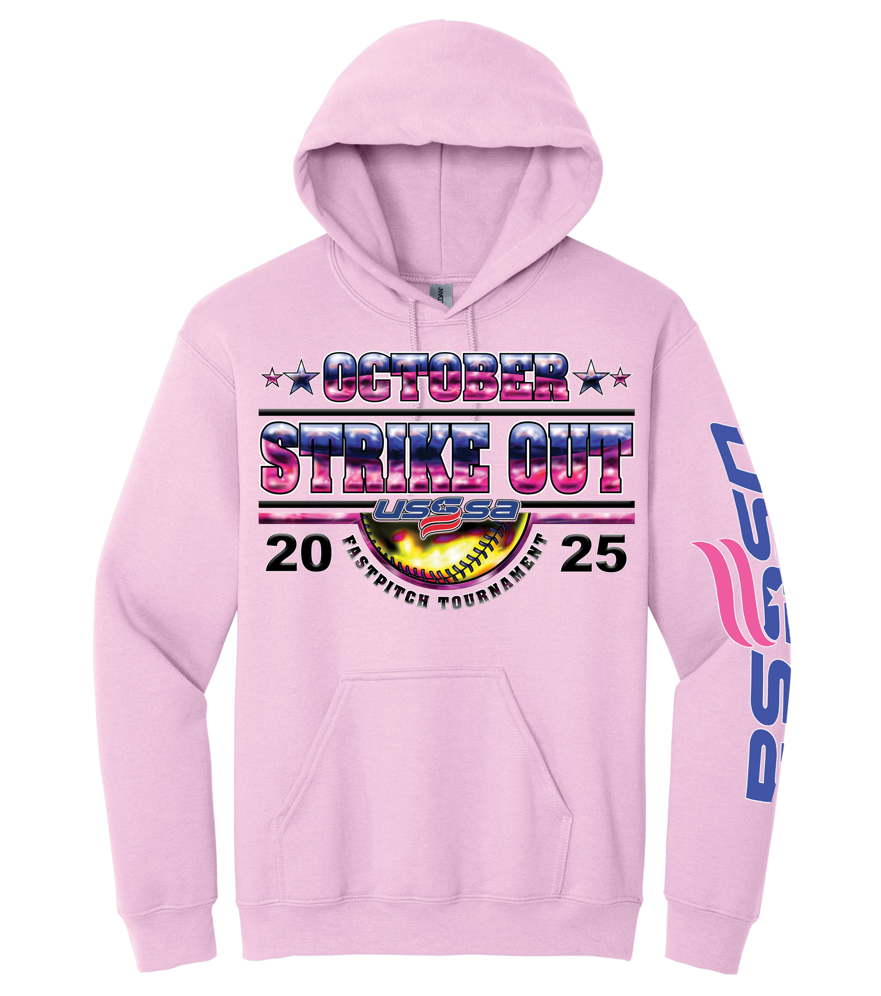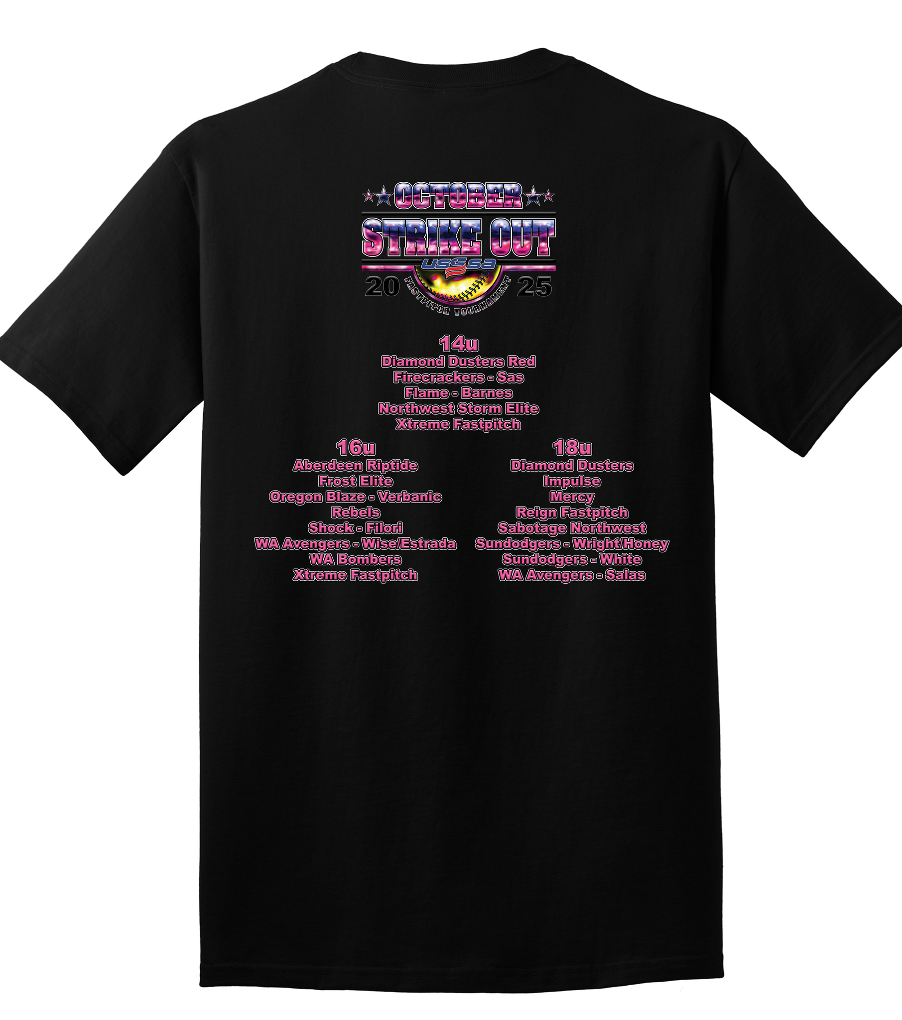 2025 October Strike Out Tournament Hoodie or T-shirt  (List of all teams participating will be printed on the back of garment)