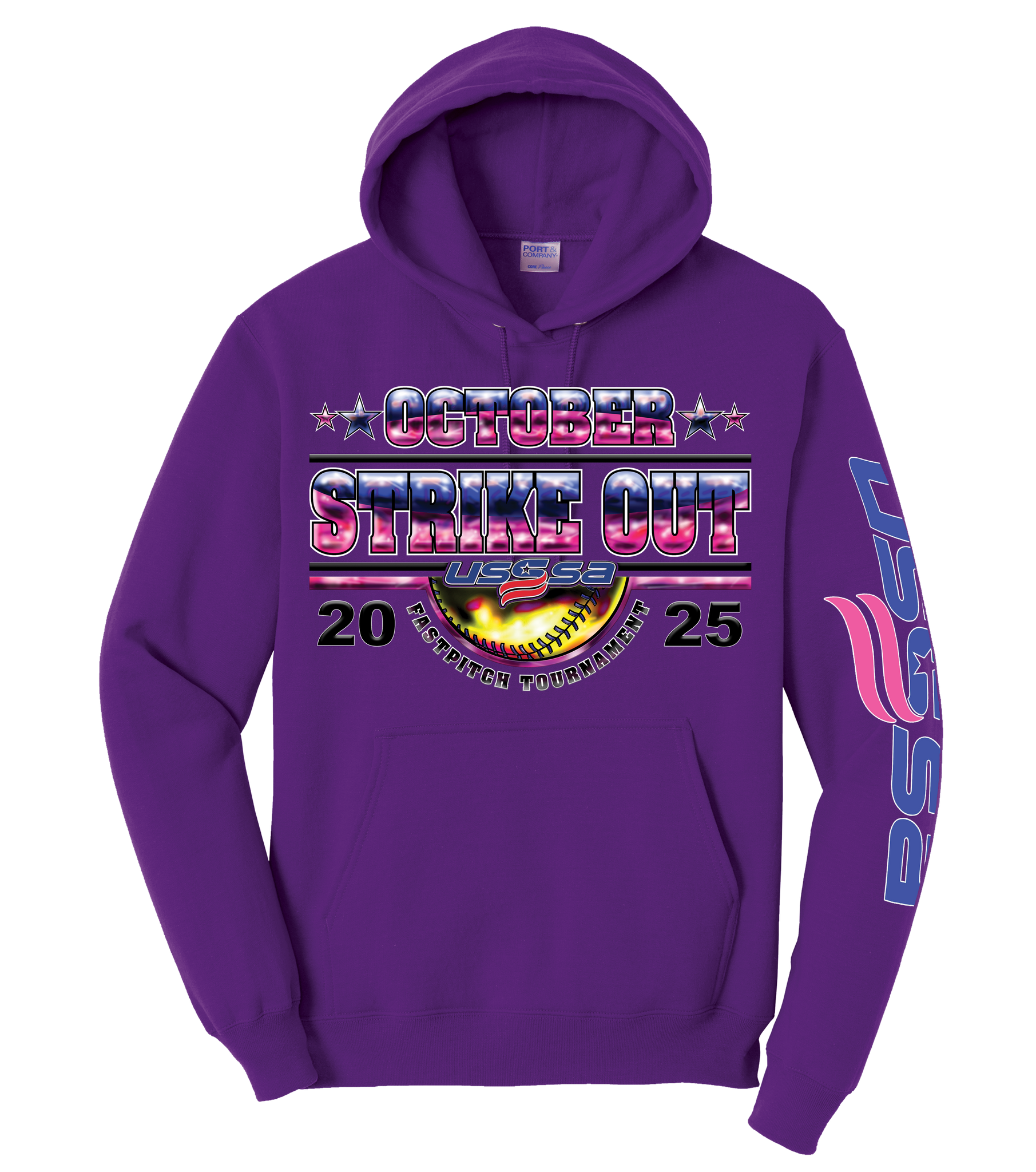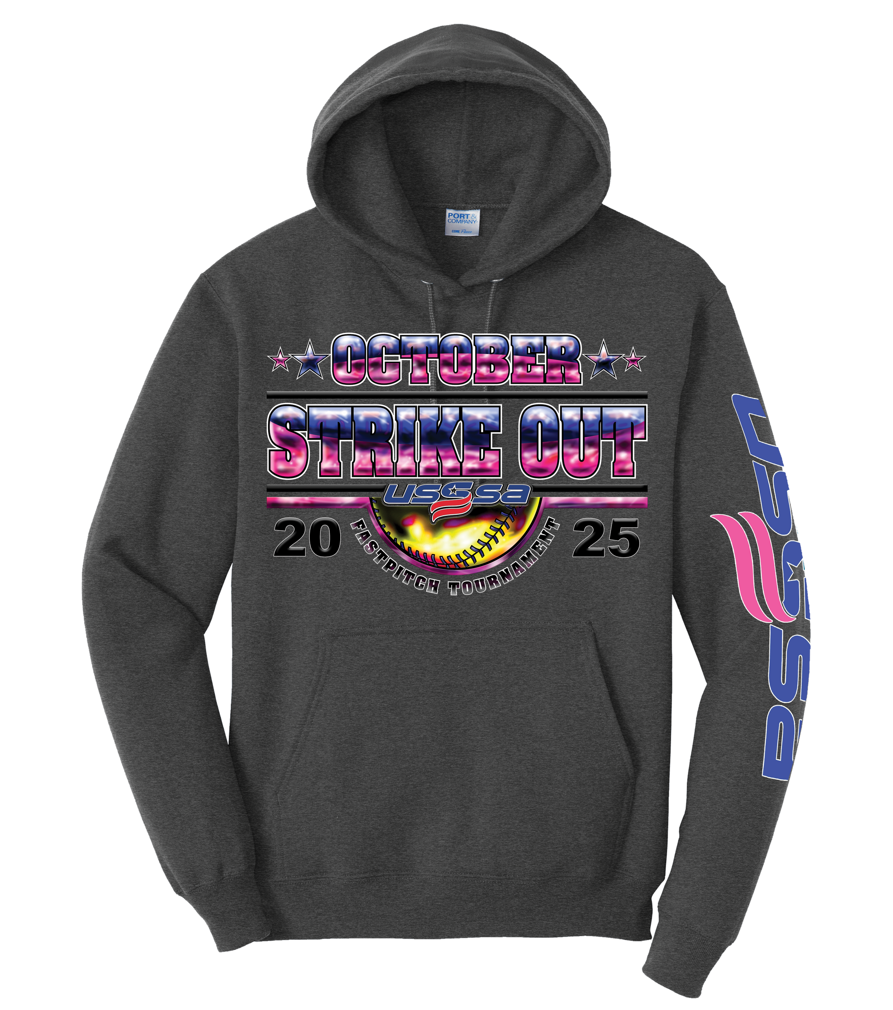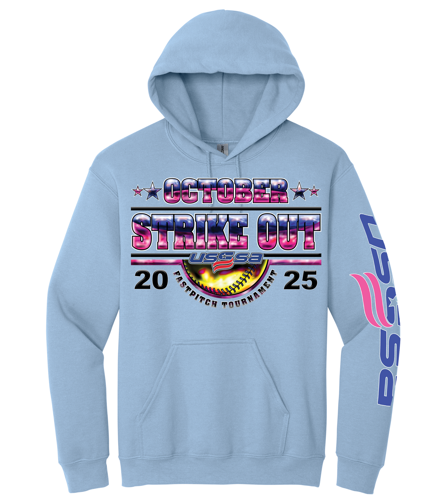 2025 October Strike Out Tournament Hoodie or T-shirt  (List of all teams participating will be printed on the back of garment)